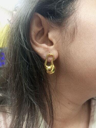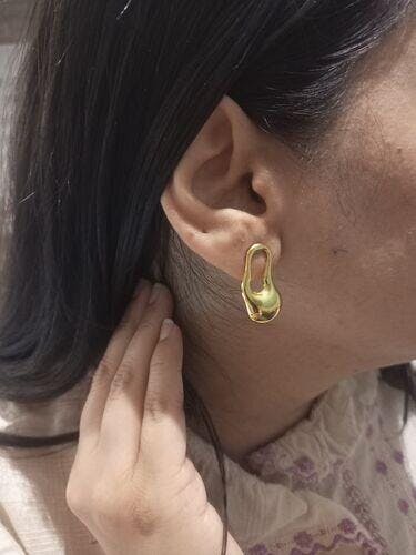 he Iris Sculptural Drops Earrings For Women are a modern take on statement earrings. Crafted in high-quality metal with premium 18K gold plating. Their fluid, abstract silhouette makes them an art-inspired piece that moves beautifully with every turn. Designed to be lightweight and comfortable, these earrings add a touch of sophistication while staying easy to wear all day. Anti-tarnish and hypoallergenic, they’re made to last and remain gentle on your skin.