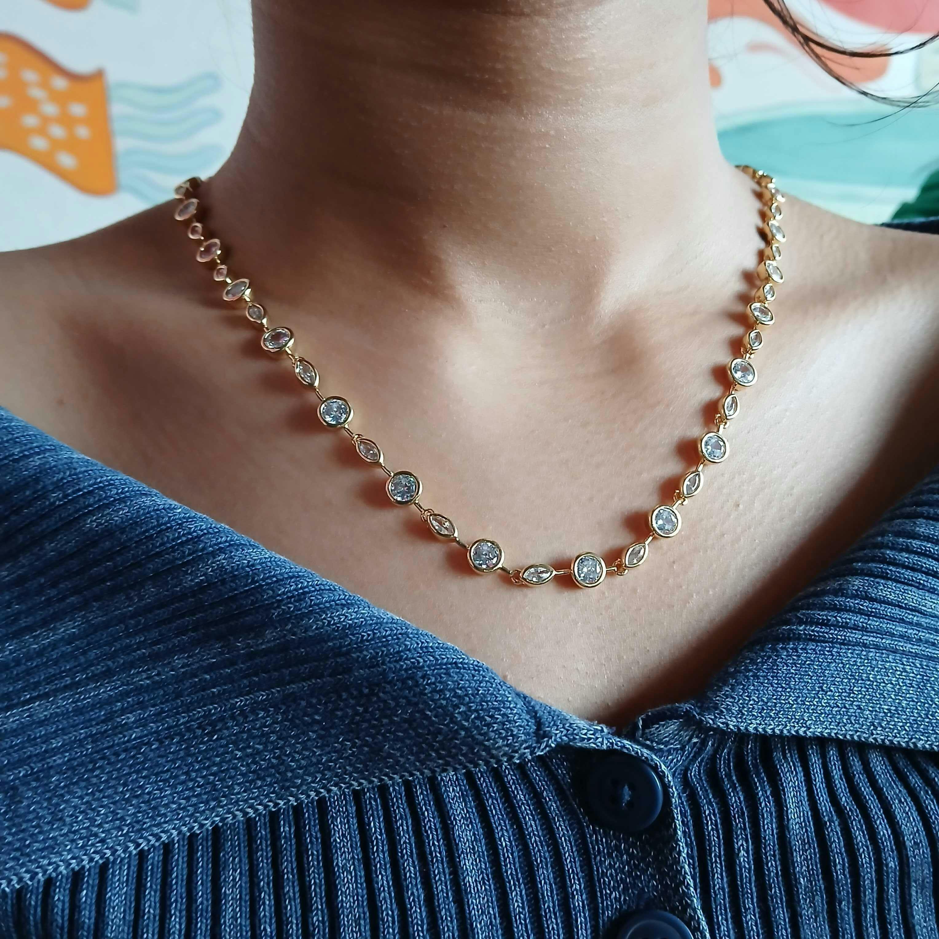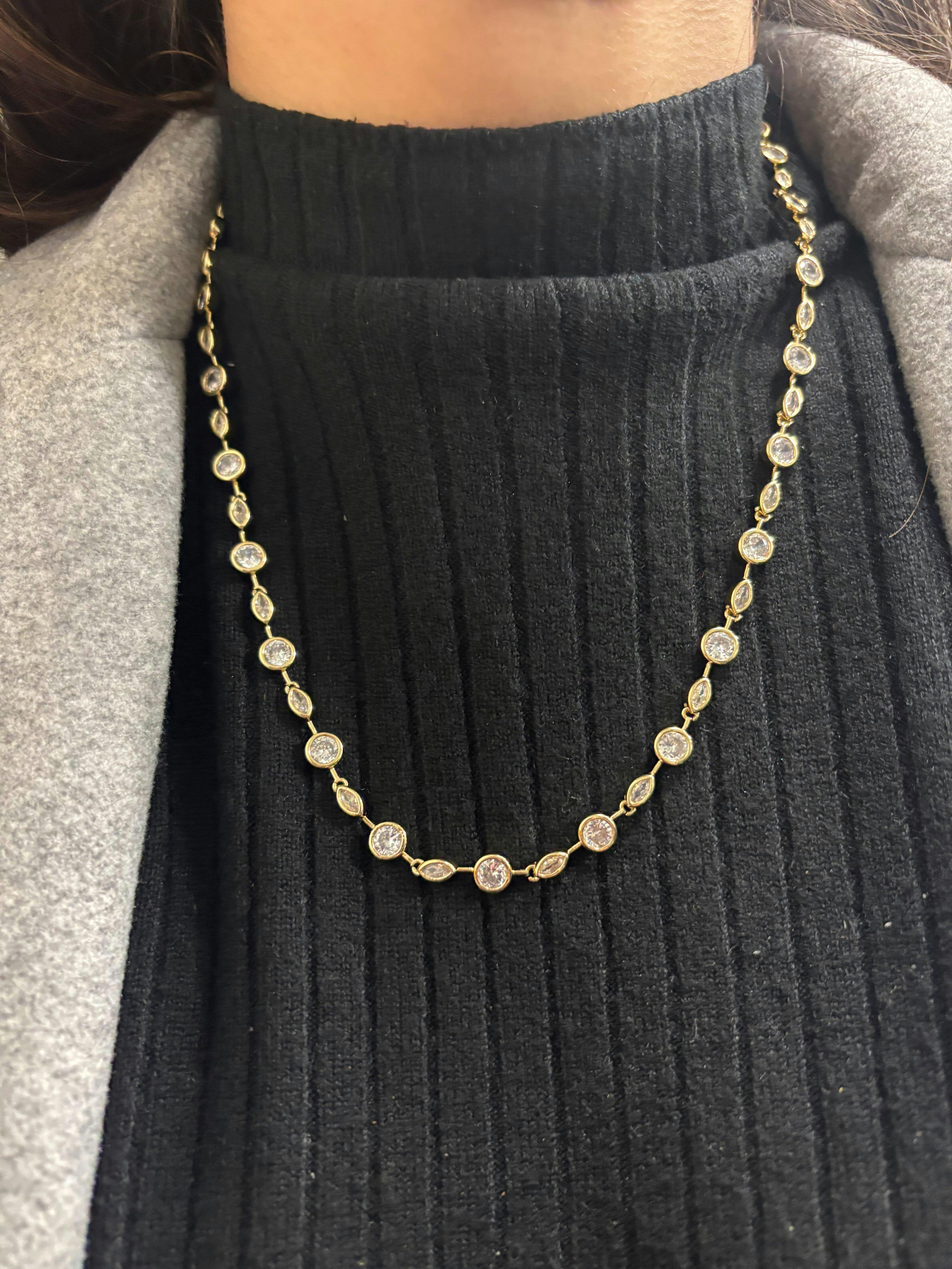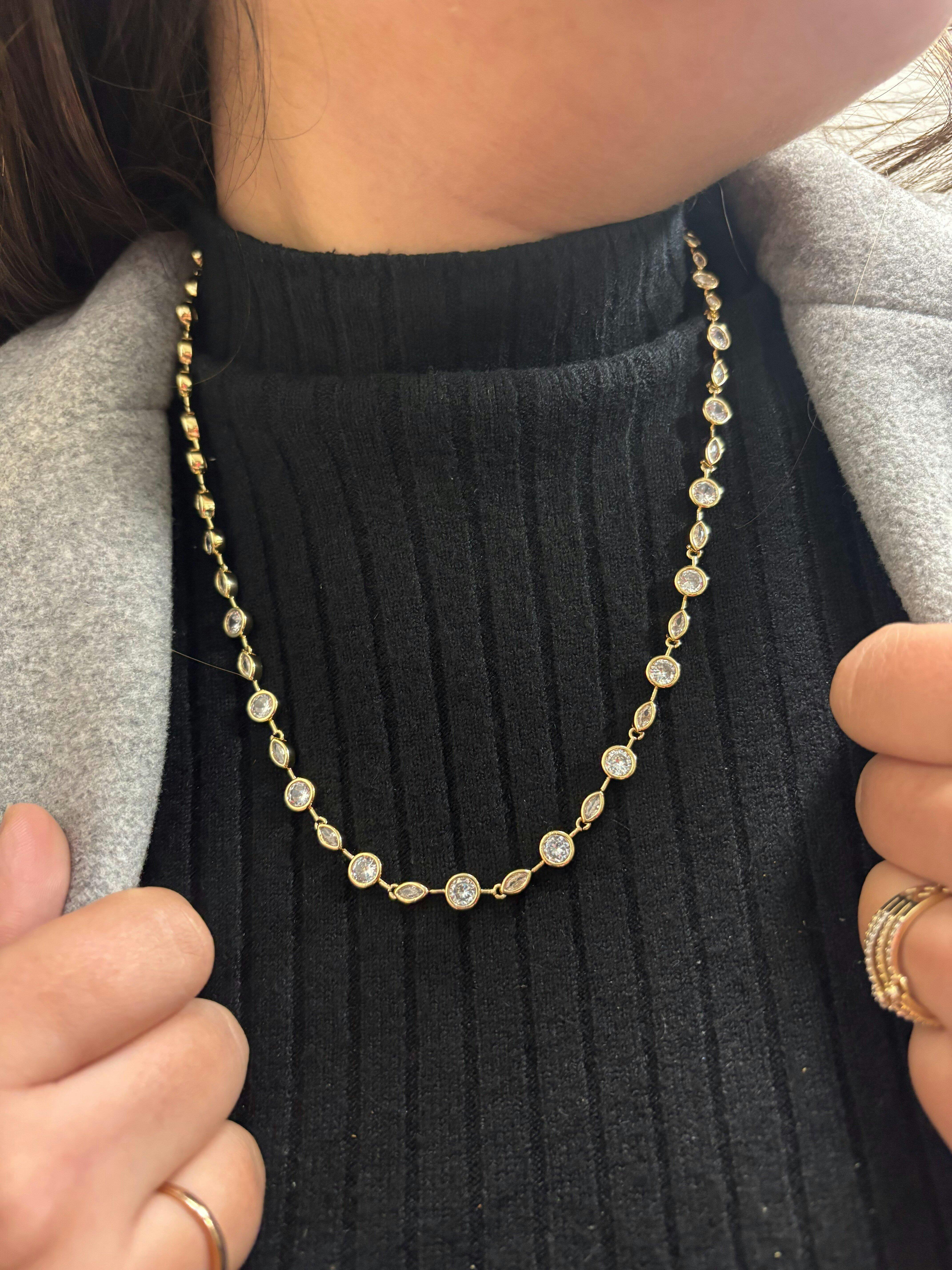 • Sleek bezel-set crystal tennis necklace design
