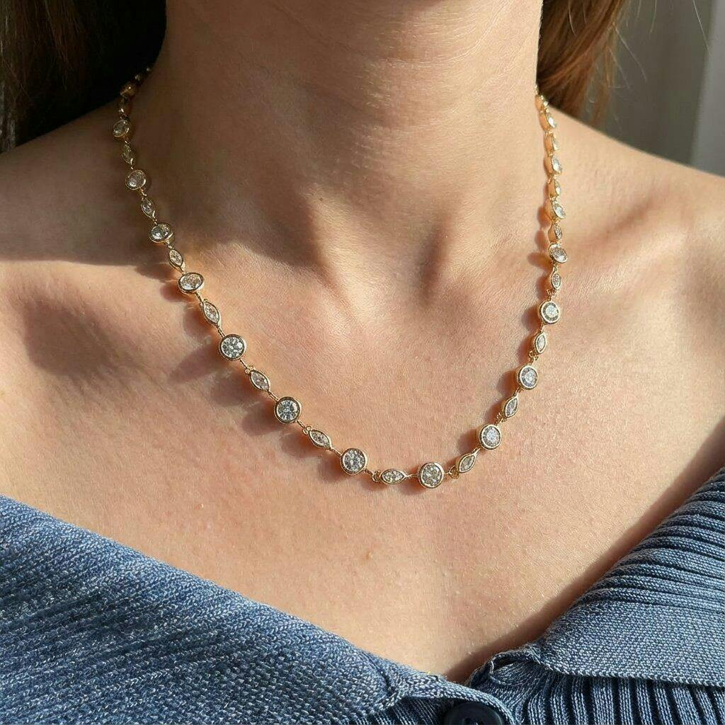• Design: Classic tennis necklace silhouette