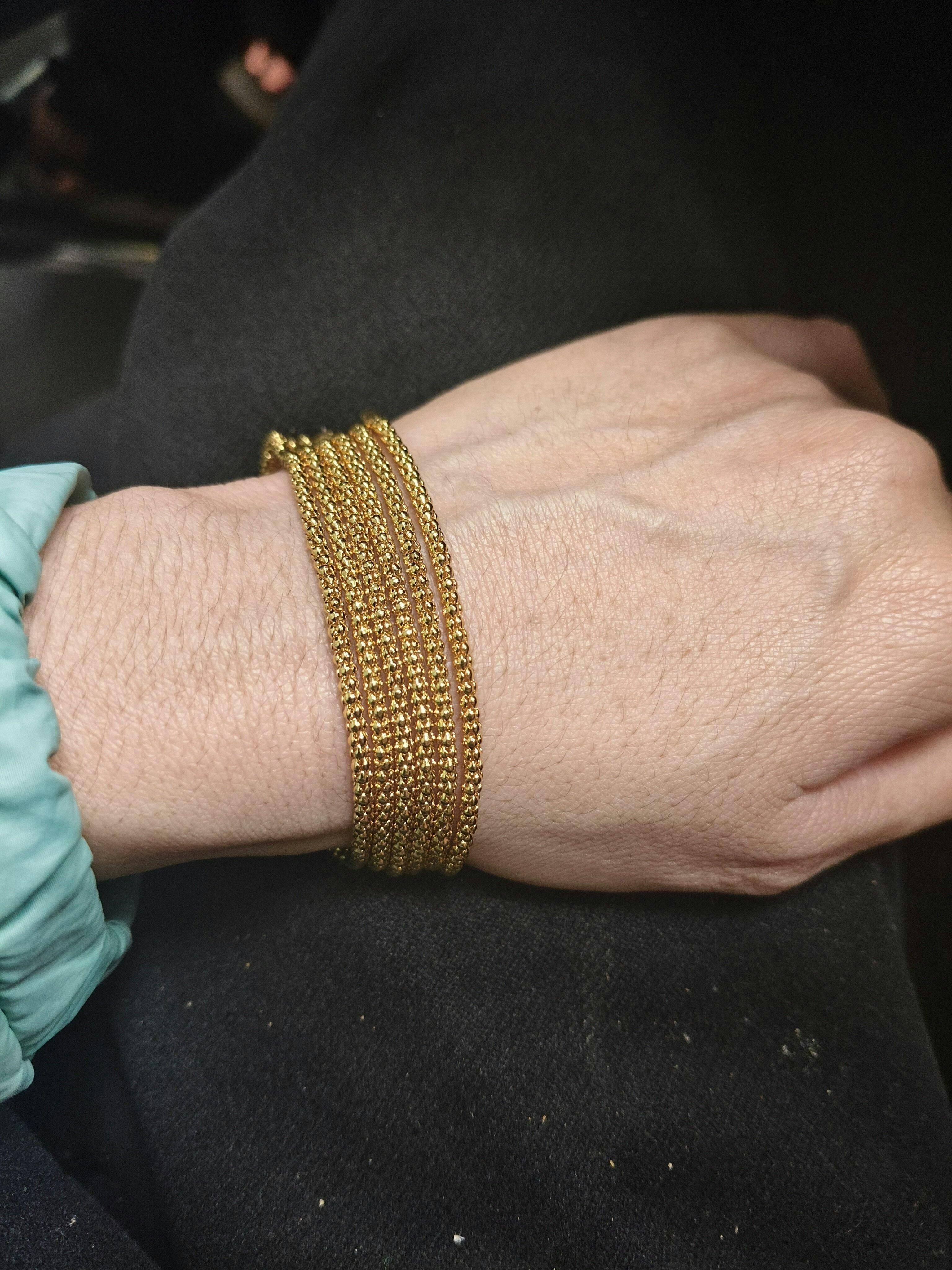 The Sabine Multi-Strand Bold Bracelet is a refined statement piece designed for lovers of bold jewelry with timeless appeal. Crafted with multiple fluid mesh strands, this bracelet creates a rich, layered texture that catches the light beautifully. Polished and substantial yet comfortable to wear, Sabine adds instant sophistication to both everyday and occasion looks.