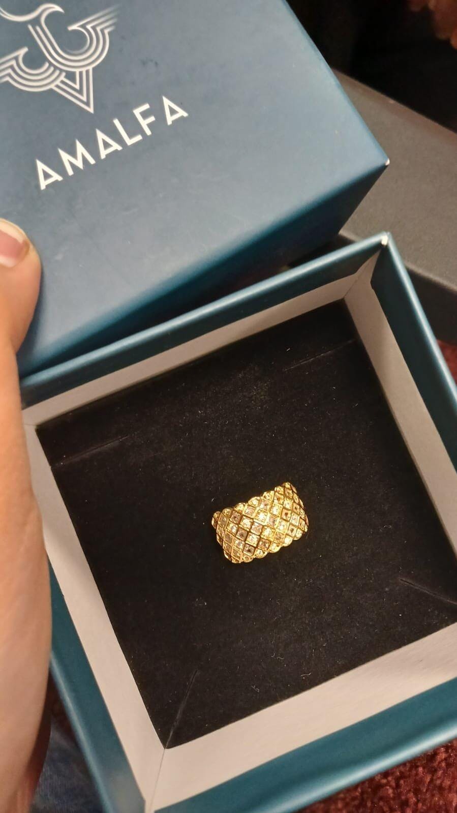 • Wear solo as a statement ring or pair with slim bands for contrast