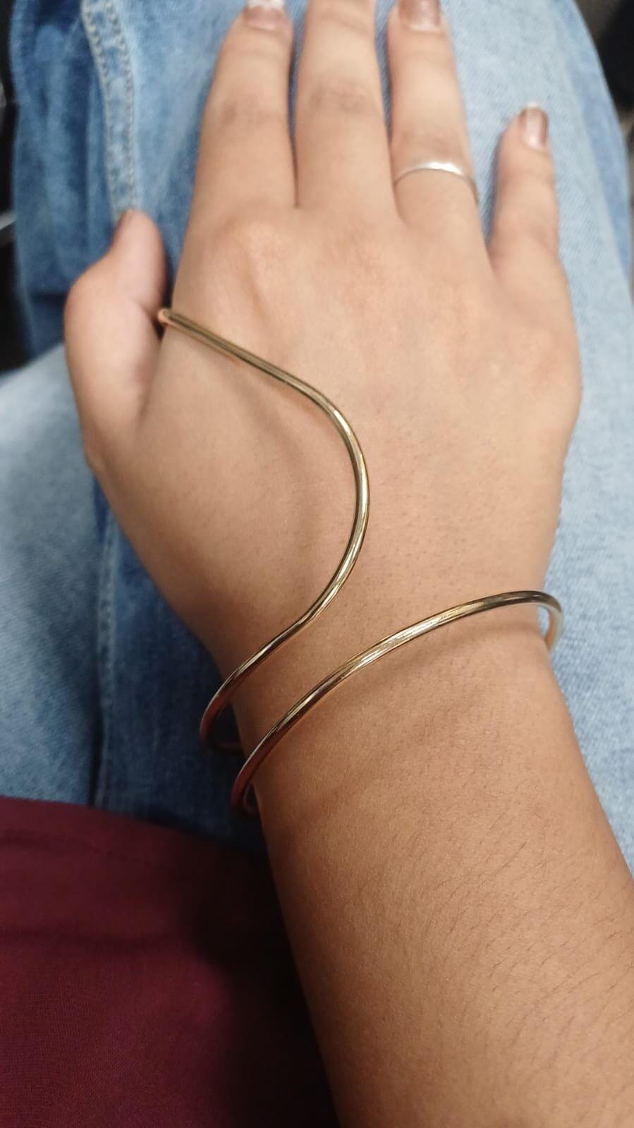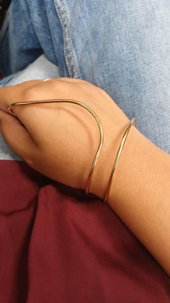 The Zoya Wave Bangle Statement Bracelet flows like liquid gold on your wrist—effortlessly bold with a fluid silhouette that curves and catches the light just right. Whether you wear it solo or stack it up, this open-style Bangle Statement Bracelet brings a minimalist edge that turns heads.